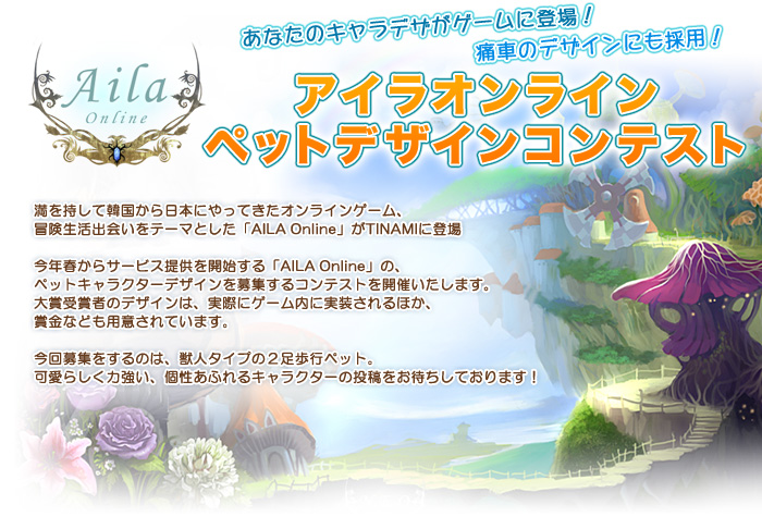 「AILA Online」上のペットキャラクターデザインイラストを募集。『獣人タイプの2足歩行型』、作者オリジナルの作品に限る。