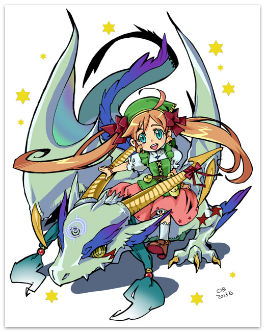 お題:ドラゴンに乗った女の子のイラスト