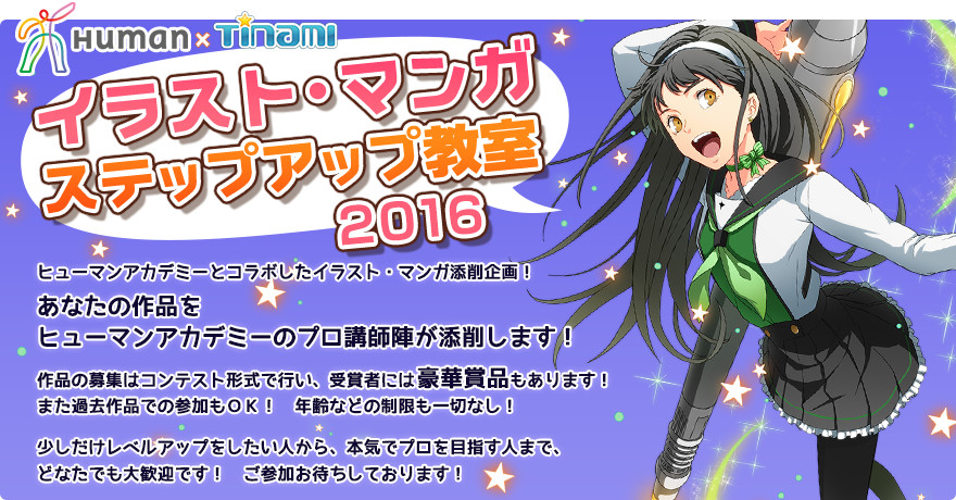 ヒューマンアカデミーのプロ講師陣に添削してほしい、自由なイラスト・マンガを募集します。
