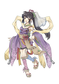 短めにアレンジされた和服、帯や飾り紐の躍動感で、踊り子の軽快さが伝わります。キャラクターもとても可愛らしく、心をこめて舞を踊ってくれそうです。