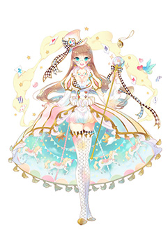 ステンドグラスという硬い質感の素材を、柔らかいドレスにアレンジしたところが好評価を得ました。杖の優美な形状や、彩度を抑えたタイツの色遣いも、キャラクターを上手く際立たせています。