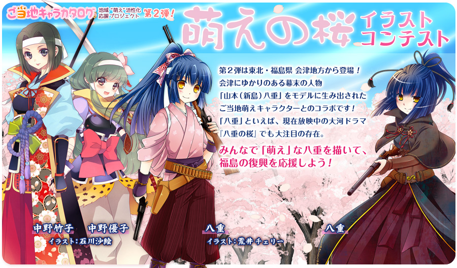 「八重」を中心に『萌えの桜』キャラクターをテーマにしたイラストを募集します。