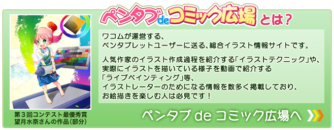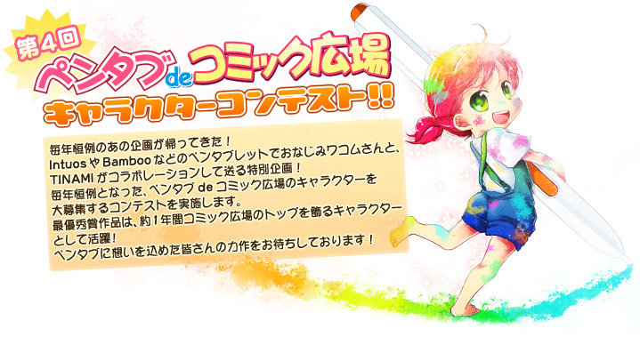 ワコムのペンタブレットを使って描かれた、「ペンタブ de コミック広場」のトップページを飾るキャラクターを募集します!