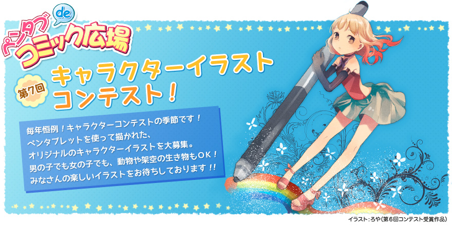 - ワコムのペンタブレットを使って描かれた、『ペンタブ de コミック広場』のイメージキャラクターイラストを募集します。
