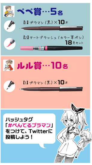 ハッシュタグ「#ぺんてるプラマン」をつけて