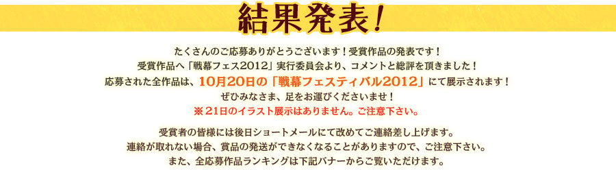 応募作品の一部は、「戦幕フェスティバル2012」会場にて展示されます。(展示作品数未定)