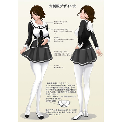 デザインのテーマを決めて、細かい部分の構造まで考えながらデザインされた力作です。お嬢様学校の生徒、というイメージも上手く表現できていると思います。