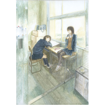 部室でののんびりした時間の流れを思い出す作品です。背景の小物など、細部まで丁寧に描かれた部分が作品の世界観をよくつたえています。