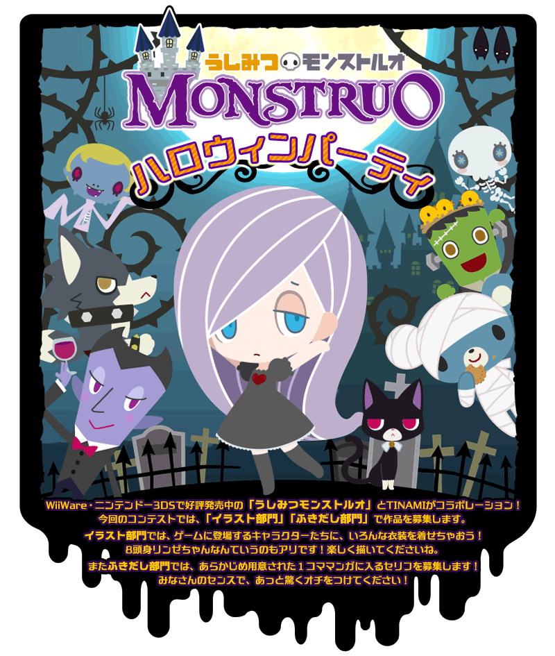 - うしみつモンストルオに登場するキャラクターに、あなたの好きな衣装を着せて描いてください。