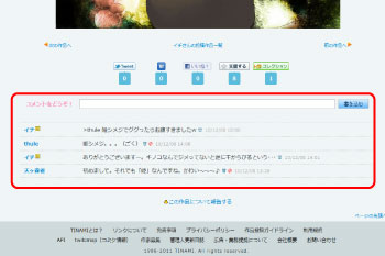 作品ページの下部、「コメントをどうぞ!」から一言コメントが寄せられます。
